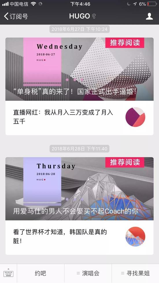 以iPhone 6为例,微信改版前一屏能够显示关注的订阅号数量为8个,三屏就是24个。“试问下,有谁关注的公众号数量低于24个的?我身边的人几乎没有,大都是关注二三十个甚至更多。”杨晗予无奈地表示,从2012年开始经营内容,一开始积累的粉丝也不少,但这两年发现尽管内容越做越精致,还经常做一些话题互动甚至抽奖,但是内容打开率却越来越低。