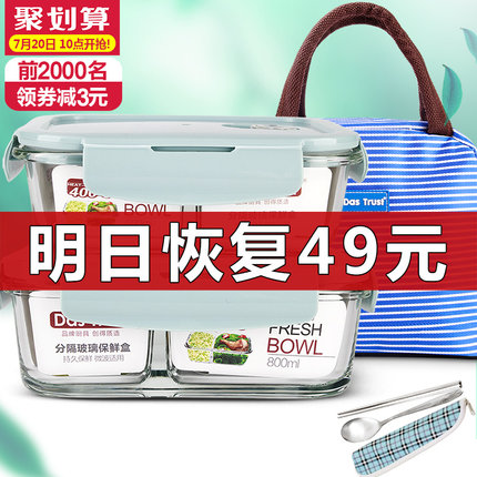 【创得 耐热玻璃饭盒 微波炉可用,送保温包 券后20.9元包邮】