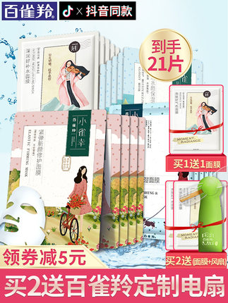 【百雀羚】大牌品质,天然纤维材质,植物草本温和配方,四款面膜,缤纷搭配,紧致细肤,年轻莹亮,全方位多效护肤,下单送面膜一片=21片,2套加送小风扇【赠运费险】