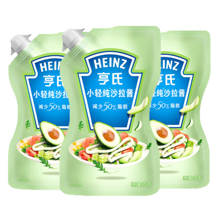 【脂肪减半!Heinz 亨氏小轻纯沙拉酱175g*3袋 券后28元包邮】