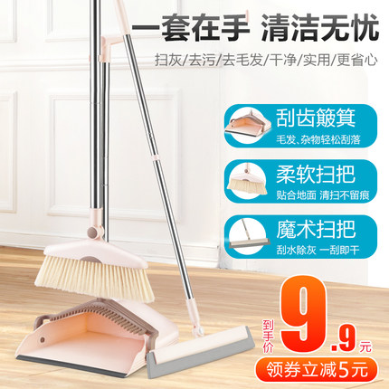 这款扫把簸箕套装,半包簸箕,灰尘和垃圾不容易翻出;细密扫把丝,不易变形,耐潮湿,扫地更干净。扫把杆和簸箕杆采用不锈钢材质,比较结实。原价14.9元,使用5元优惠券后,9.9元到手