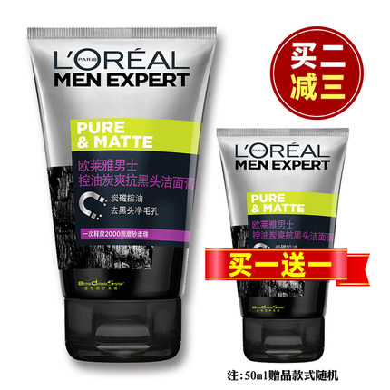 欧莱雅男士洗面奶,磨砂控油,炭爽抗黑头,保湿补水,男士定制护肤方案解决男士面子问题,甩掉油光肌,时刻散发俊朗神采。