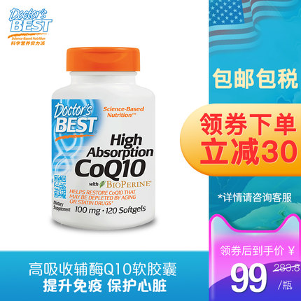 【提高免疫力!Doctor’s Best Q10辅酶软胶囊100mg*120粒 卷后69元包邮(原价284元)】