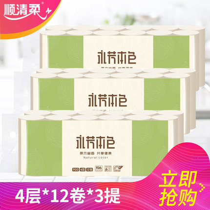 【【顺清柔】纯木原浆加厚卷纸 36卷 券后39.9元包邮】