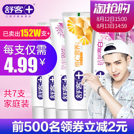 【舒克】牙膏口气清新家庭装7支,固齿洁白,齿白七分俏,貌美牙为先,舒客清新口气唤醒你的早晨,你离女王只差一个牙膏。