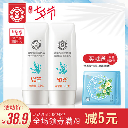 【【大宝官方旗舰店】补水保湿隔离防晒霜75g*2 券后28.9元包邮【送运费险】】