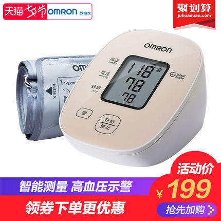 阿里健康大药房售价199元,下单立减10元,再叠加20元优惠券,实付169元包邮。欧姆龙的血压计在全球市场占有率是排名第一的,测量准确,而且产品质量也很过关,称得上是家用血压计的顶尖制造商。