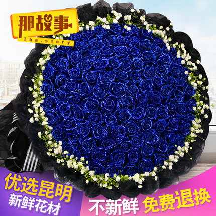 【情人节礼物 那.故事 11朵蓝玫瑰礼盒 全国市区2小时极送达 ¥148】
