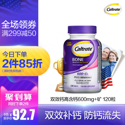 【美国进口 惠氏 钙尔奇钙片矿物质维生素D 120片 劵后69元包邮】