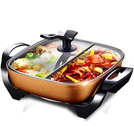 1500W大功率,采用U型双管加热管设计,加热速度快,食物受热均匀;三档火力调节,无极控温,方便使用;内壁经过仿荷叶式物理不沾处理,在锅表面形成一定的张力,从而达到物理不沾的效果,防糊易清洗;一体成型无焊接,不串味,经久耐用;带有过热断电保护和安全保险丝设置,安全使用;尺寸:42*31*18cm;容量:5L。