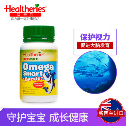 【HEALTHERIES 儿童 鱼油DHA胶囊 30粒 39元包邮包税】