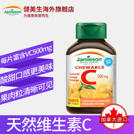 【【抢第2件0元】拍2共4瓶!加拿大进口 Jamieson 健美生 天然维生素C片 120片*2瓶*2件 劵后99元包邮(京东392元)】