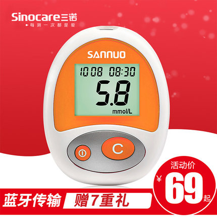 【三诺 蓝牙血糖测试仪 50条试纸+50支采血针 49元包邮(79-30劵)】