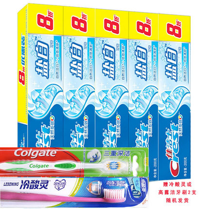 【三支草本,两支盐白,每支200g共5支装,赠送两支冷酸灵牙刷】天猫正品大品牌佳洁士专业口腔护理牙膏,亮白清新,早晚双效,远离口腔异味,美好一天从清新口气开始。