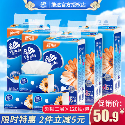 【维达 家庭装餐巾纸抽纸 3层*120抽 20包 劵后45.9元包邮】