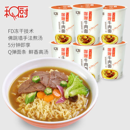 【小米生态链品牌 和厨 FD冻干咖喱牛肉面 非油炸 71g*6杯 26.9元包邮 (京东38.4元)】