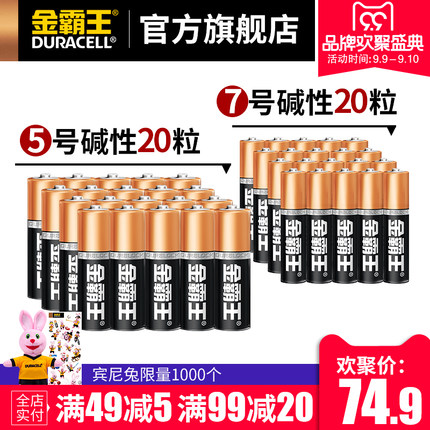 金霸王电池组合装,5号电池,7号电池各20粒,限量赠送宾尼兔,巴菲特旗下公司产品,天猫品质保证,更享10年保质期!