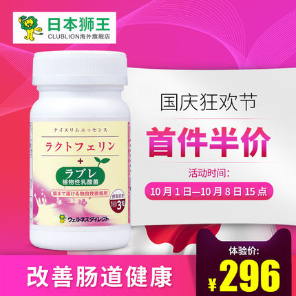 【神价格 日本进口 狮王 新品 乐菲灵+植物性乳酸菌 90粒 246元包邮 大降100】