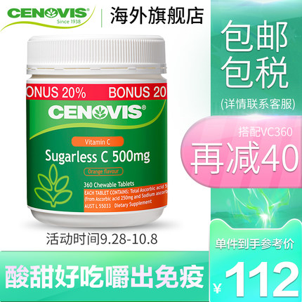 【澳洲进口,Cenovis 无糖配方维生素C咀嚼片 360片 劵后72元包邮(平常112元)】
