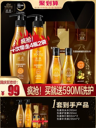 【【滋源旗舰店】无硅油生姜洗护265ml+265ml+【赠补充装2袋+旅行2件套】券后79元包邮】