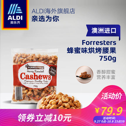 本款为澳洲进口,精选越南优质腰果,搭配野花蜂蜜烤制而成,香脆可口,今年4约生产,保存期274天。规格:750g。ALDI海外旗舰店售价79.9元,点此领取25元优惠券,实付54.9元包邮。