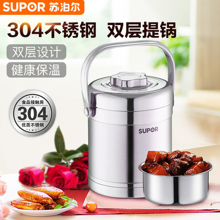 【苏泊尔】6小时保温保冷,合理分层设计,锁鲜不怕馊,304不锈钢,45°螺旋盖口,一锅两用,装汤带饭;让生活摆脱约束。【赠运费险】