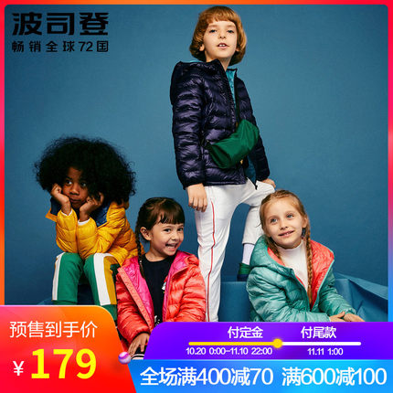 【双11预售:波司登 90%白鸭绒 童装羽绒服 抗菌杀菌 179元 需付定金20元 此前最低价是219元】