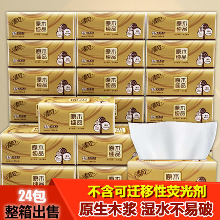 大品牌清风,天猫品质,商超同款,超值优惠24包3层130抽,纸张尺寸136mm*206mm,原木纯品金装升级款,无香型,不含荧光剂,婴幼适用。