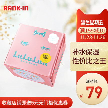 天猫RANKINCLUB官方海外旗舰店79元,可用5元优惠券,实付74元到手;LuLuLun面膜是日本本土最具性价比的面膜之一,cosme上榜产品。最常见的包括蓝色,粉色跟白色3种。这款 LuLuLun 保湿面膜 粉色款,原产国日本,是一款滋润度和保湿度很高的产品,也是几种面膜里美容效果最平均的一款。内含玻尿酸、EGF、熊果素、木瓜蛋白酶、大豆精华、聚麸胺酸、卵磷脂7种美容成分,无色素、无矿物油,补水明显,让肌肤瞬间水润,适合各种肌肤。