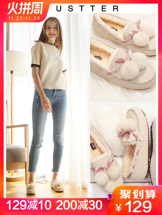 【牛皮+毛绒 Justter 爵思塔 獭兔双毛球 豆豆鞋 券后114元包邮(吊牌价568元)】