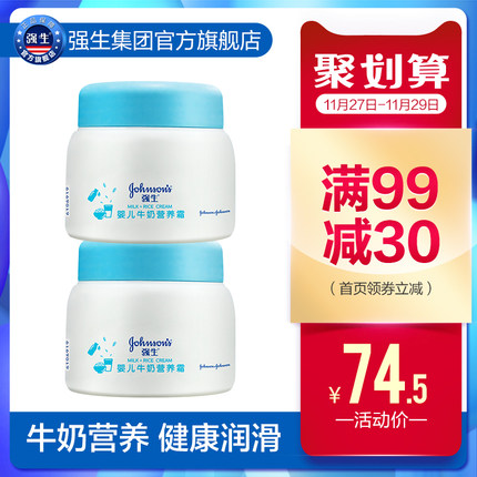 【强生 中国官方旗舰店 2瓶x60g 婴儿牛奶营养霜 劵后39.9元包邮(长期69元)】
