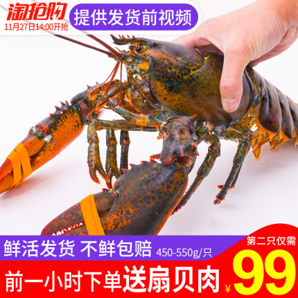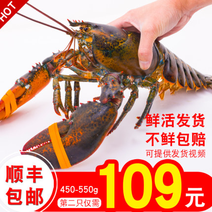 【鲜多邦 旗舰店出售 鲜活波士顿龙虾 450g-550g/只 死亡/变质赔付 2只238元包顺丰空运 超市200元/只】