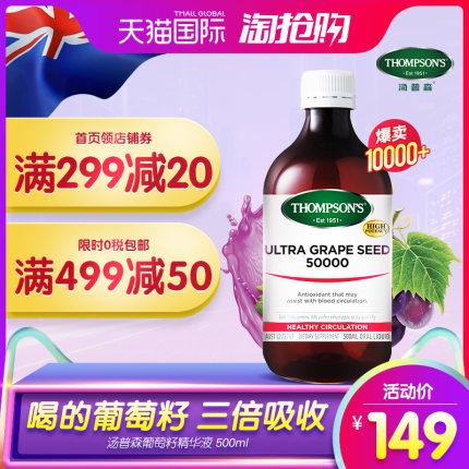 【美白养颜!新西兰国宝级 Thompsons 汤普森 葡萄籽精华液 500ml 券后59元包邮(专柜价298元)】