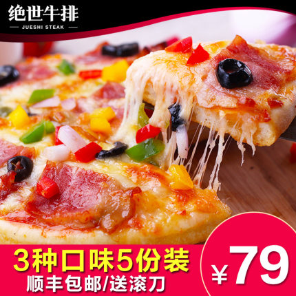 顺丰包邮 5份 绝世披萨,味道浓郁,口感Q弹,馅料丰富,拉丝芝士,饼皮外脆里嫩,口感醇厚,脆有嚼劲。3种口味5份装,满足你的味蕾~