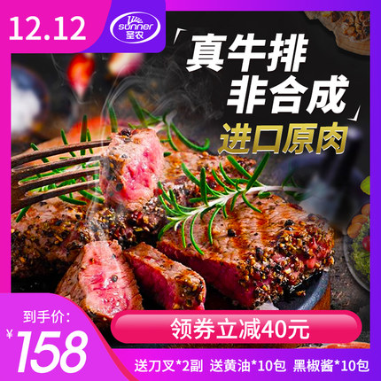 【SUNNER/圣农 黑椒菲力牛排10片1500g 券后128元包邮】