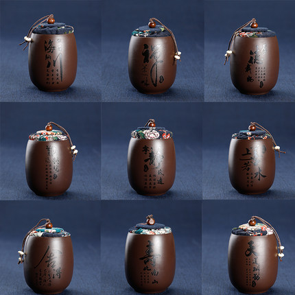 紫砂茶罐,特色裁花麻布,一罐存一茶,防止串味,精雕工艺,还能储存干果、药材、粗粮等,用处多多!