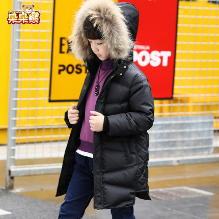 朵朵熊新款儿童 中长款 羽绒服,适合110-170cm小朋友,内里填充90%白鸭绒,含绒量88-148g,防寒保暖,高支高密防泼水面料+双层加厚涂层胆布+丝光柔软里布+进口车缝,4层锁绒工艺,有效防钻绒。