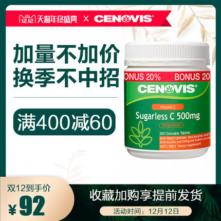 【360片,天猫国际:澳洲进口 Cenovis 无糖配方 维生素C咀嚼片 劵后72元包邮】