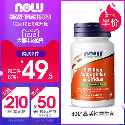 【美国进口 诺奥 NOW Foods 80亿益生菌粉胶囊 60粒 劵后59元包邮包税 平常99元】