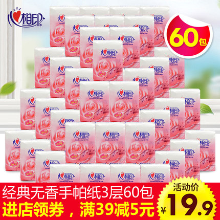 心相印印花纸巾小包手帕纸卫生纸餐巾纸小包装,恒安官方授权店,三层升级,加倍柔厚体验,10包*6条,自然无香,优质原生木浆,不添漂白剂,健康安全,七天无理由退换送运费险,购物无忧有保障。