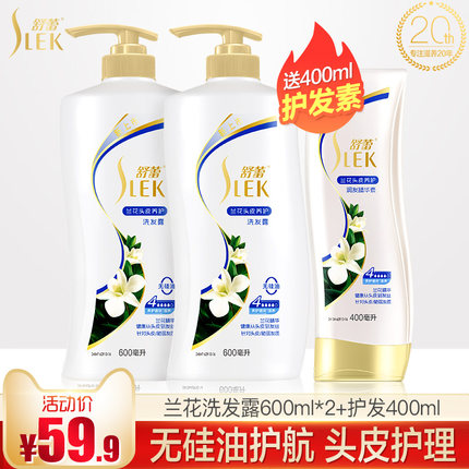 【拍1得3,舒蕾 官方旗舰店正品 无硅油清爽洗发水600ml* 2大瓶+护发素400ml 券后39.9元包邮】