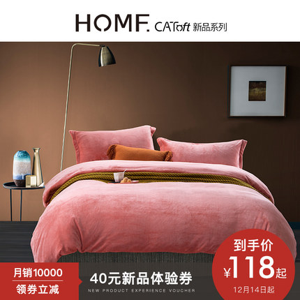 【梅西百货指定合作商!homf 红磨坊 双面法兰绒四件套 券后108 – 158元包邮(京东266元起)】