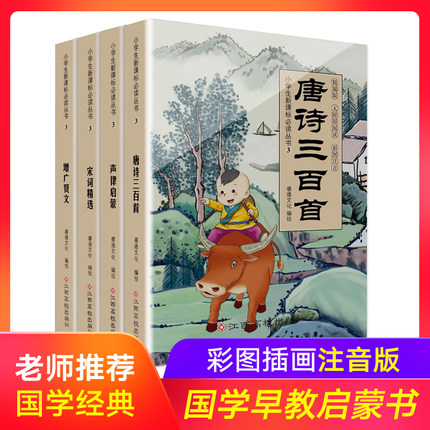 广东旅游出版社-彩绘注音版国学经典文学名著全套4本,并配有精美插图,帮助儿童学些唐诗宋词,培养孩子的文学兴趣,增长见闻,培养语感。赠运费险