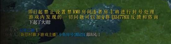 在一次更新后,作者在游戏内弹出字幕表示:即日起禁止设置禁RMB房间,违者房主将进行封号处理。