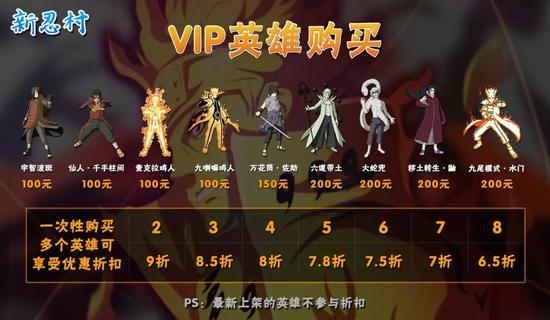 忍者村大战,作为火影IP中人气最高的竞技地图,在11平台上搞起了相同的盈利模式:付费解锁英雄角色。一个玩家想要买这九个角色,加一块1000多块。