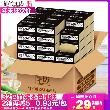 【原浆抽纸整箱装纯竹工坊家用原色抽纸餐巾92丑* 32包 券后27.9元包邮】