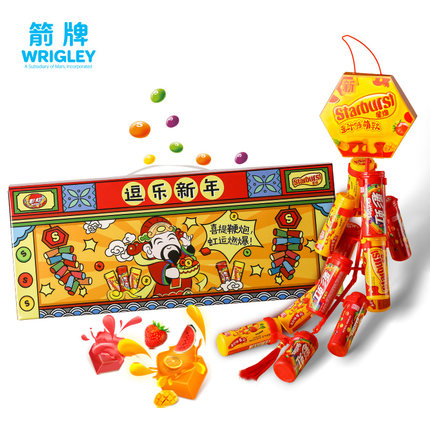箭牌彩虹糖逗乐新年糖果礼盒,内含彩虹糖迷你筒装30g*6瓶+星爆迷你筒装25g*6瓶,鞭炮造型,新意满满,年味十足,自留或者送人都很不错。