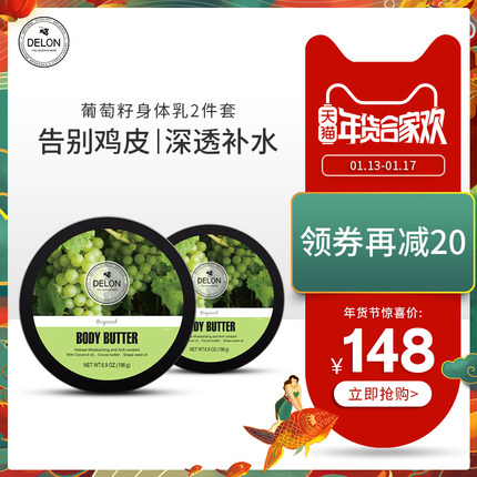 【天猫国际:加拿大 Delon 迪朗贝斯 清润葡萄籽身体润肤乳 196g* 2盒 88元年货价】