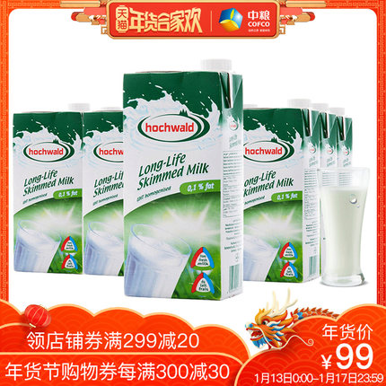 【德国第2乳制品牌,原装进口!12盒x1L装 好沃德 脱脂牛奶 券后94元包邮,再返¥4.95红包(专柜216元)】