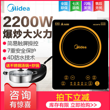 送汤锅+炒锅买电磁炉就选美的,品牌信赖,智能滑控技术,记忆启停,便捷重启,4D防水技术,6大烹饪功能,轻松享受美食。赠运费险。